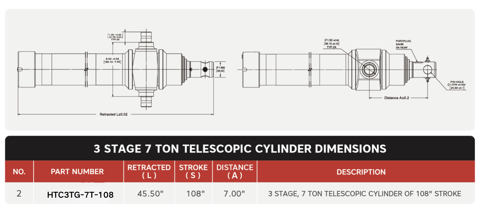 "HTC3TG-7T-108", 3 चरण, 108 को 7 टन" स्ट्रोक टेलिस्कोपिक सिलिन्डर