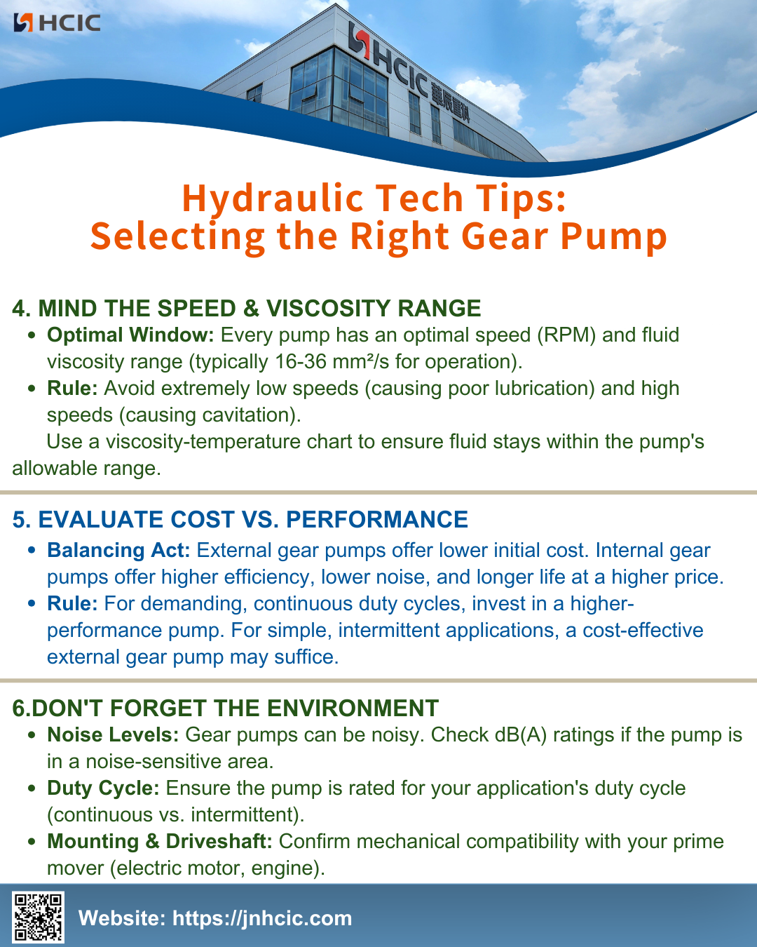 नियम: अत्यन्त कम गति (खराब लुब्रिकेशनको कारण) र उच्च गति (cavitation को कारण) लाई बेवास्ता गर्नुहोस्। तरल पदार्थ पम्पको स्वीकार्य दायरा भित्र रहन्छ सुनिश्चित गर्न चिपचिपापन-तापमान चार्ट प्रयोग गर्नुहोस्।